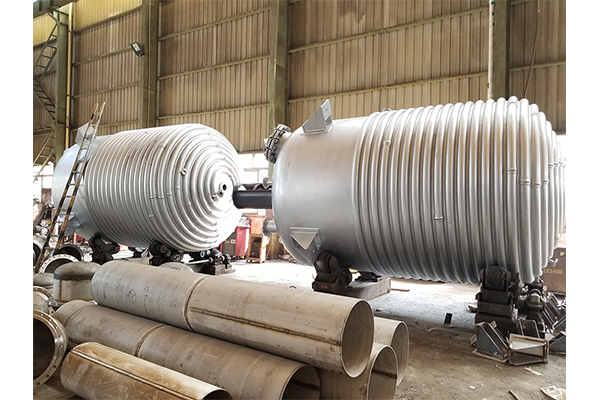 由于外盘管夹套改变了内筒的受力状态,因此内筒壁厚也就相对减薄,由于外盘管夹套焊接加工有间隙,因此,当所需传递热量相同时,半圆管夹套反应釜传热面积相应较小。所以说,工业上使用的外盘管反应锅都要求具有耐压性